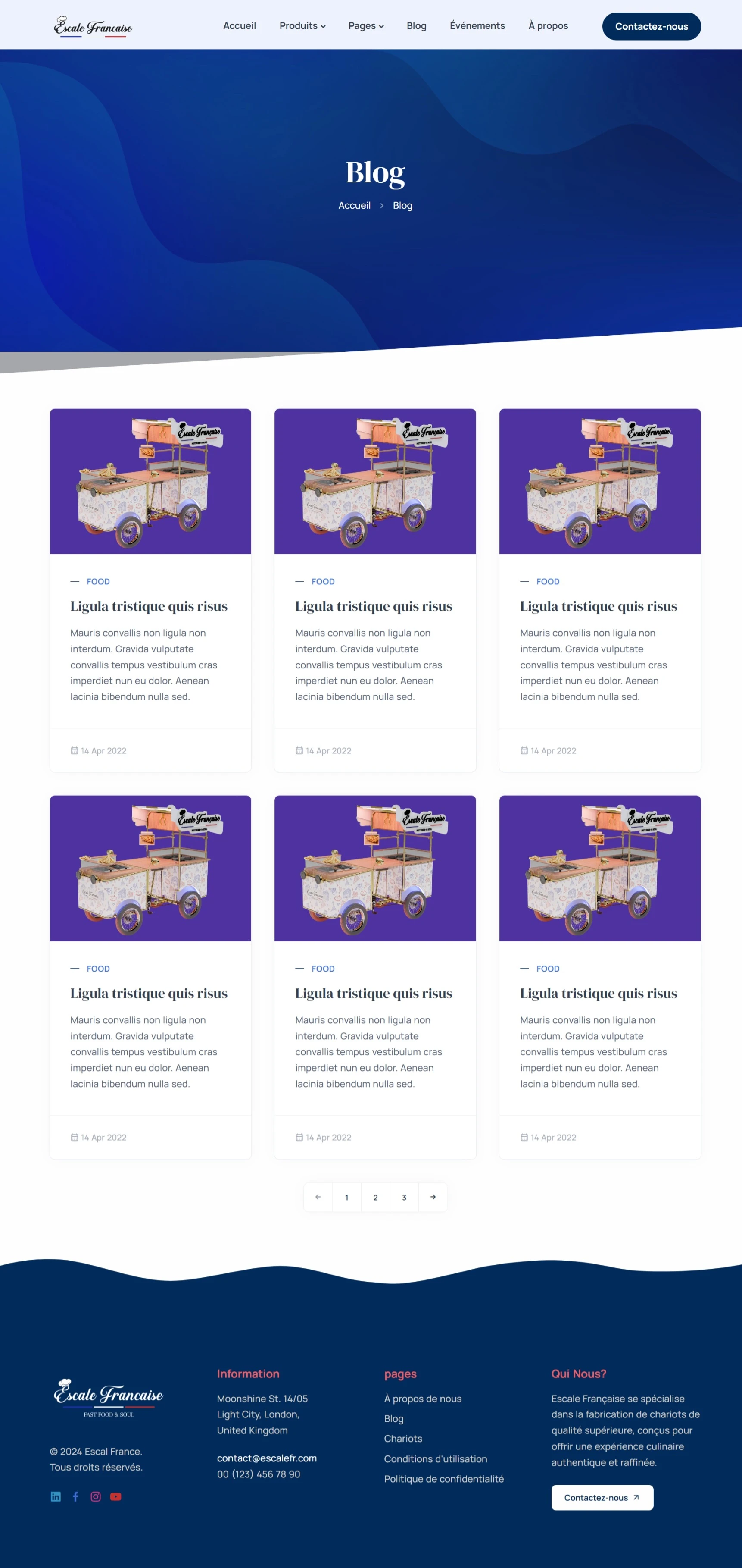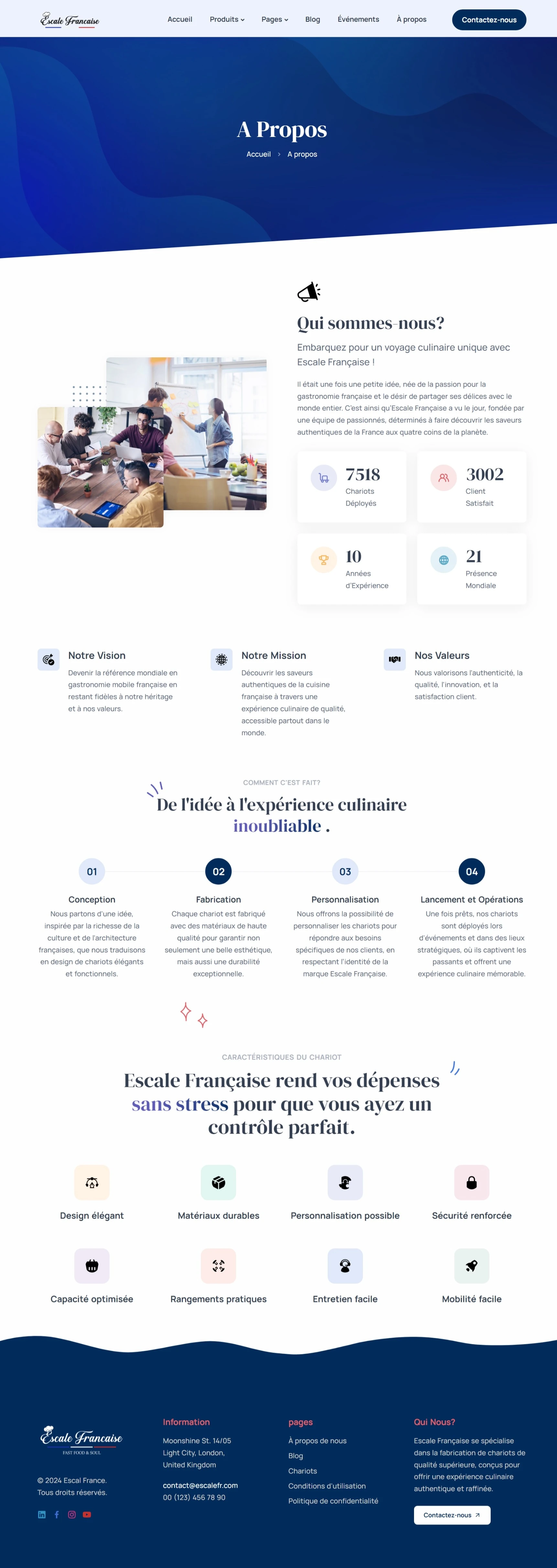 Created a corporate website for Escale Française, a France-based company specializing in food carts. Built with Laravel and Bootstrap, the website showcases their innovative dining concept, combining refined cart designs, a vibrant ambiance, and high-quality products inspired by Parisian elegance and luxury.