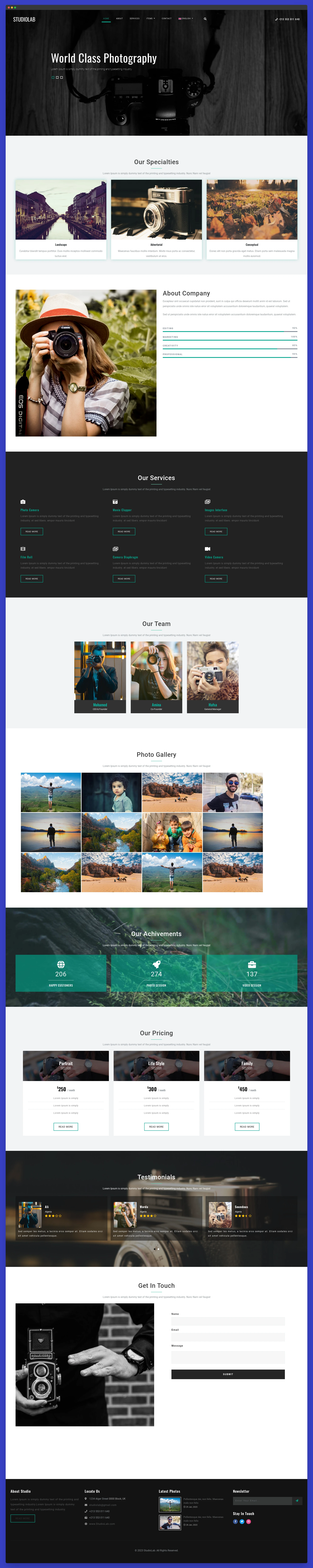 Designed multilingual landing page for the fictional agency "StudioLab" using HTML, CSS, JavaScript, and Bootstrap. This project seamlessly integrates language-switching functionality to cater to both Arabic and English audiences. The use of Bootstrap ensures a responsive and visually appealing layout across various devices. The combination of engaging visuals, clear content, and language flexibility provides an immersive and inclusive user experience, reflecting the fictitious agency's global presence.